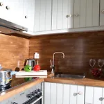 This accommodation is equipped with an electric kettle, a refrigerator, and an oven for self-catering in a dining area.